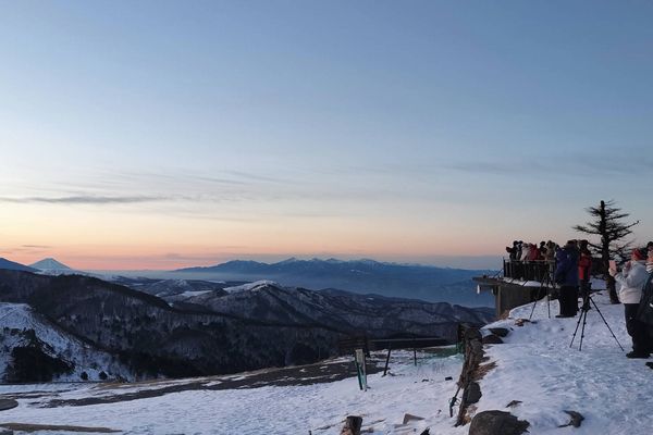 遠くで雲海風呂に浸かる富士山、八ヶ岳、南アルプスを静かに眺めていました。