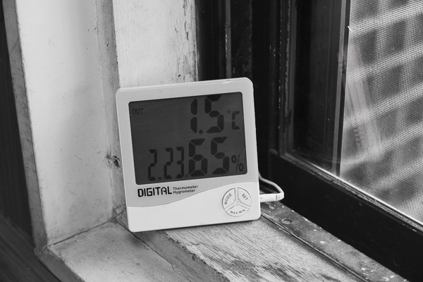 午前の7時39分の温度計。