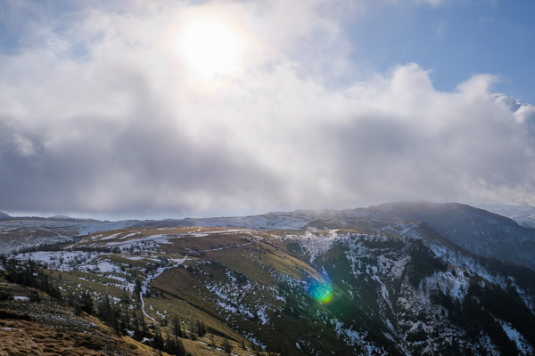 8時09分、高原が見えてきました。雲間にポツンと太陽。