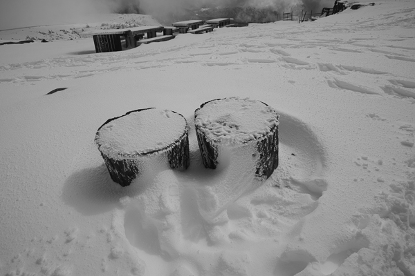 昨日の雪は15センチから20センチくらいの積雪でしょうか。 湿った重たい雪ですが、美ヶ原に冬景色が戻ってまいりました。