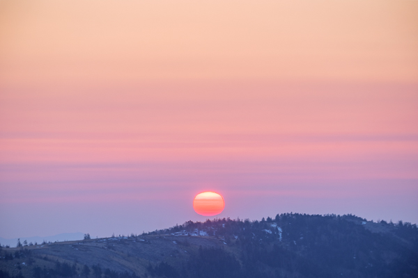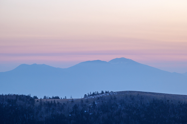 5時16分、朝焼けが広がる日の出前の美ヶ原高原。