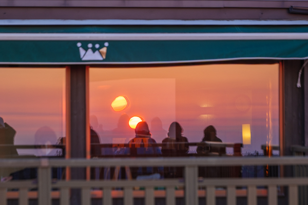 5時51分、振り返ると日の出カフェには太陽が二つ!!