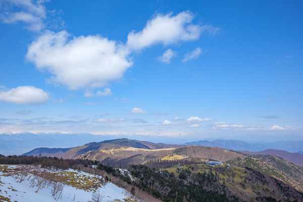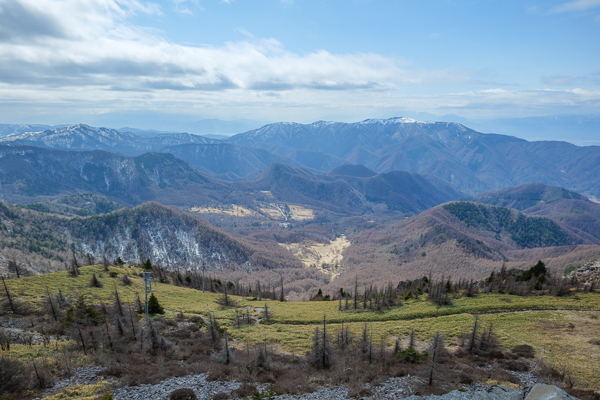 11時09分、眼下に眺めるアルプス展望コースは、白から緑へ衣替え。