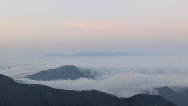 稜線付近に霞があり、朝焼けのグラデーションが綺麗でした。